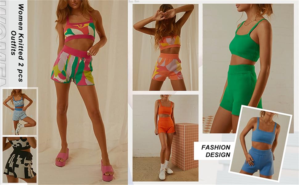 Amazon Com Mylleure Women Sleeveless Knitted Two Piece Outfits Contrast Color Tank Crop Top High Waist Shorts Set Retro Y2k Colorful Slim Fit Summer Streetwear Clothing Shoes Jewelry